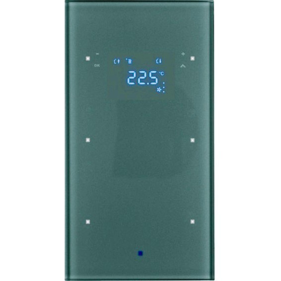 Стеклянный сенсор 2-канальный с регулятором температуры помещения Стекло, цвет: алюминий Berker TS S